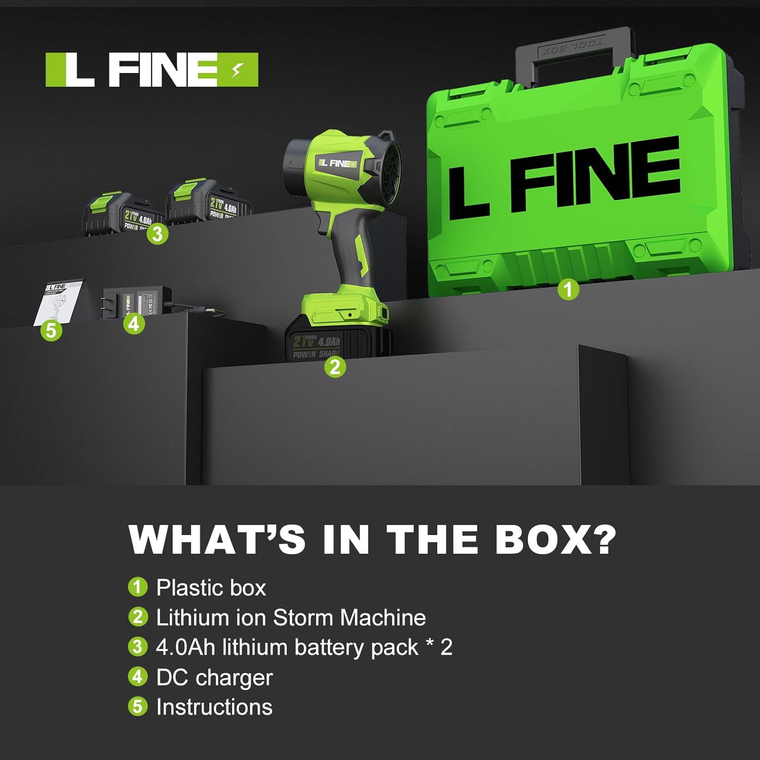 This cordless leaf blower is powered by two 20V 4.0Ah lithium-ion batteries, providing up to 120 minutes of total runtime. Even at the highest speed, it can run for over 60 minutes, making it ideal for extended cleaning tasks.