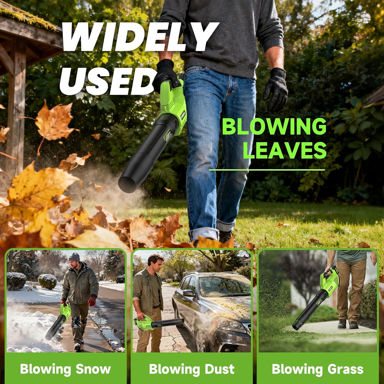 Ideal for: Lawn care, patios, sidewalks, garages, dust removal, and light snow blowing.